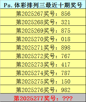 排列三第2025277期直选复式:(02578)(12578)(01357)